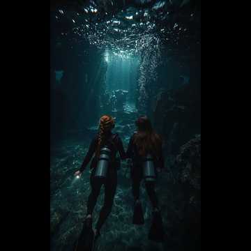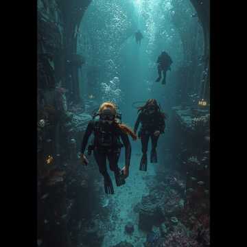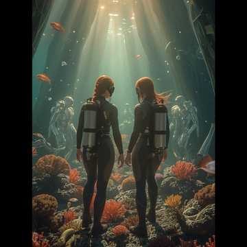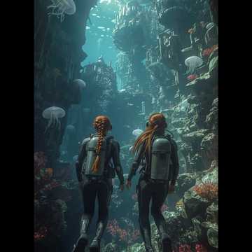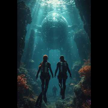An ambient cinematic instrumental evoking a deep underwater descent into forgotten oceanic ruins, Featuring immersive ocean soundscapes, distant whale calls, bubble trails, and submerged reverb textures, Layered ambient synths and soft orchestral elements like muted strings, detuned piano, and celesta shimmer with slow dissonant swells, Echoes of an ancient civilization resonate through reversed pads, bowed glass, and ghostly chimes, The mood transitions from peaceful curiosity to majestic awe, ending in ominous pulses hinting at a dormant AI presence, No rhythm-driven sections β tempo is fluid and evolving, Ideal for a mysterious sci-fi setting on Earth, with bioluminescent ruins and ancient sunken technology, Acoustic textures dominate, with deep stereo panning, tension-building harmonics, and no vocals, Inspired by the atmospheres of Mass Effect, Arrival, and Subnautica, [cinematic] [ambient synth] [underwater ambiance] [ethereal] [mysterious] [deep sea atmosphere] [story-driven]
