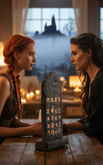 A narrative horror gothic ambient piece, designed as a recovered cassette recording, No singing, Two female spoken voices in close-mic ASMR style, whispering, breathing, hesitating, interrupting each other, One voice calm, analytical, rational; the other intuitive, uneasy, emotionally disturbed, The music is slow, suffocating, and oppressive, inspired by Eastern European gothic horror and psychological horror films, Atmosphere evokes Dracula myth without clichΓ©: cold stone, abandoned chapels, dusty archives, damp corridors, Background score uses deep unstable drones, dissonant bowed strings (cello, contrabass), sparse filtered or prepared piano notes, distant gothic bells, and subtle metallic glitches suggesting ancient non-human technology, Long reverbs, hollow echoes, cavernous space, Constant tension that never resolves, slowly thickening as the dialogue progresses, Music feels like an unseen presence listening in the dark, unsettling and restrained, intimate and deeply ominous