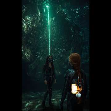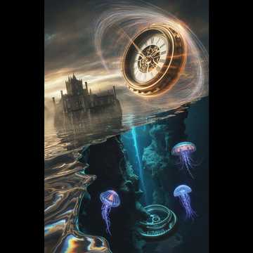 Industrial metal meets ambient underwater electronica, Tempo 120β130 BPM, flowing and hypnotic, Warm, low-gain distorted guitars with heavy reverb, Mechanical percussion: processed factory hits, hydraulic hisses, metallic clangs, Double kick drums drive like a deep-sea engine, Bass guitar with sub-synth layers evokes tectonic energy, Subaquatic textures: hydrophone field recordings (bubbles, sonar, vents), pitch-shifted whale pads, shrimp crackles for syncopation, Waterphone, glass harmonica, Cristal Baschet bring eerie organic depth, Modular and granular synths mimic tides and AI patterns, Sparse, delayed piano strikes and vocoder choirs suggest the Eye's presence, Nyckelharpa and hang drum add melodic soul, Orchestral layers: sustained low strings, emotional cello/erhu lines, buried euphonium swells, Mood: tension softened by awe, caution blended with sacred hope, A poetic, mechanical descent into the unknown