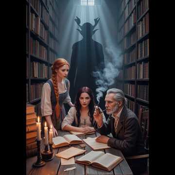 Theatrical gothic power metal with an adventurous and scholarly tone, Energetic, noble, and uplifting, like an epic quest through ancient knowledge, The music feels playful yet solemn, theatrical without excess, driven by discovery and curiosity, As the song progresses, the heroic atmosphere slowly darkens, revealing mystery and unease, Female lead vocal: clear, warm, expressive power metal soprano, alternating gentle intimacy and soaring epic lines, emotional and curious, Male secondary vocal: deep, gravelly, charismatic baritone, mostly clean and narrative, carrying authority and ancient wisdom, Choirs: heroic, semi-operatic, used for epic emphasis, Instrumentation: fast melodic power metal guitars, dynamic bass, galloping drums, Harpsichord as a key element for baroque, archival color, Piano grows dominant toward the darker ending, Cinematic strings and subtle theatrical ambience (echoes, pages turning)