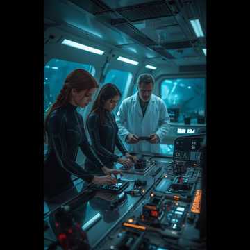 futuristic submarine atmosphere, Complex structure, progressive, highly technical, blending cinematic grandeur and relentless energy, Inspired by Blind Guardian, Epica, Devin Townsend, and Mass Effect soundscapes, Must feel like a submarine pursuit through abyssal trenchesβclaustrophobic, majestic, breathless