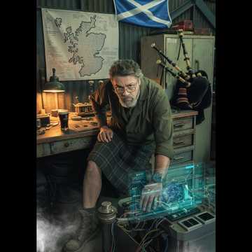 Cinematic fusion of ritual Scottish ceremonial music and fast power/pagan metal, Strong emotional bagpipes as a central instrument, solemn and majestic, like a highland rite at dusk, Traditional Scottish rhythmic patterns, deep floor toms, war drums, distant male chants, Seamless transition into energetic power/pagan metal: fast tempo (140β170 BPM), driving double bass kick, galloping rhythm guitars, complex and technical guitar riffs in verses, tight bass lines, Bagpipes remain present even in metal sections, layered above distorted guitars, Dynamic contrast: solemn, atmospheric bagpipe passages vs explosive headbang-ready metal parts, Epic, catchy chorus with dominant male lead vocal (deep, charismatic, slightly raspy, Slavic accent, singing in English), massive choir backing vocals, anthemic melody, uplifting yet powerful, Harmonious blend of ritual highland atmosphere and high-energy pagan metal, cinematic, heroic, engaging, festival-ready