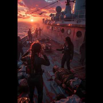 Opening with subaquatic ambient pads, granular glitches, and filtered heartbeats, the underwater horror-ambient metal track seethes with analog synths and whispering voices, Guitars in Drop F unleash doom/sludge riffs, metallic slides mimic hull stress, punctuated by slow, crushing drums, hydraulic FX, and industrial breaks, Dissonant brass, prepared piano, and growling cellos drenched in oceanic reverb add spectral unease, Vocals blend operatic soprano, mezzo harmonies, colossal Gregorian choirs, reversed whispers, and textural effects, The song erupts with blast-beats, evolving into epic post-metal, merging dark ambient, doom, and avant-garde menace into a vast, cinematic descent