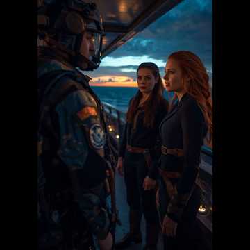 Abyssal ambient fused with epic cinematic orchestra and experimental textures, Deep strings (cellos, contrabasses) in tectonic ostinatos, massive brass(horns, trombones) like ghostly calls, Harp and celesta drenched in reverb, shimmering like deep-sea light, Heavy, spacious percussion evoking oceanic pressure and extraction machines, Processed electric guitars (delay, reverse, glitch) as textures, not riffs, Aquatic synth pads with granular filters creating a constant underwater ocean, Field recordings: crashing waves, hull creaks, abyssal rumbles at 3000m depth, Military radio FX: broken transmissions, filtered orders, harsh interference, Vocals layered: operatic tenor (dark, solemn prayer), crystalline soprano (sirenic, reverberant), deep Gregorian male choir (cavernous), filtered whispers/spoken intercom voices, Glitched and pitch-shifted vocal doubles, simulating alien vibration-based communication, Dark, majestic, mysteriousβan underwater requiem where sacred meets military oppression
