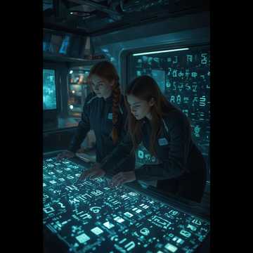 blend with ethereal female vocals (Lisa Gerrardβstyle), Vocals are ritualistic: whispered, breathy, with harmonized spoken-word dialogue, Modular synths simulate learning AI; wavetable morphing, FM glitches, and synthetic vocal fragments convey The Eye, Cristal Baschet, waterphone, kalimba and organ pads add poetic science, Mood: sacred, submerged, intelligent β a ritual between life, memory, and sentient machines