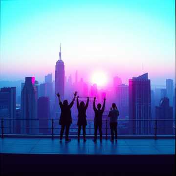 pop, Bright uptempo J-pop band feel, four-on-the-floor groove with crisp drums and sparkly rhythm guitars, Synth bells and arpeggios paint a “digital town” vibe, bass stays bouncy but light, Big, sing-along chorus with stacked male/female harmonies, short middle-eight drop to half-time then final chorus explodes with extra ad-libs and octave doubles, j-pop