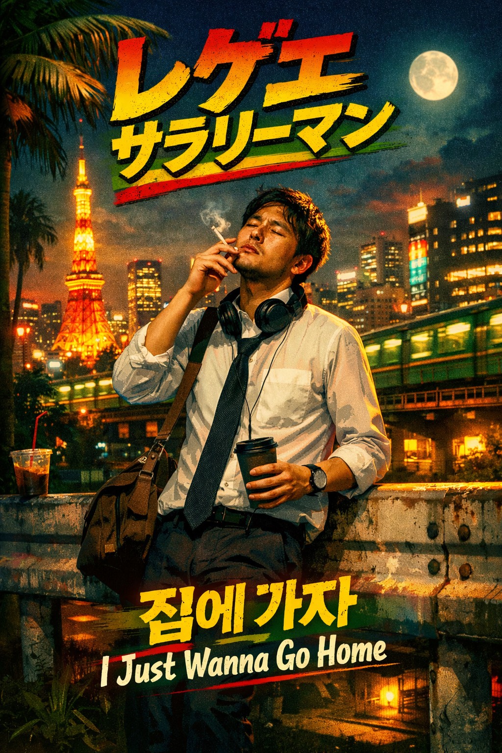 Catchy reggae hook, easy singalong chorus, laid-back groove, warm bass, offbeat reggae guitar, nostalgic late-night vibe, Tokyo city lights, multilingual hook (Korean / Japanese / English), emotional but chill, perfect for short viral clips