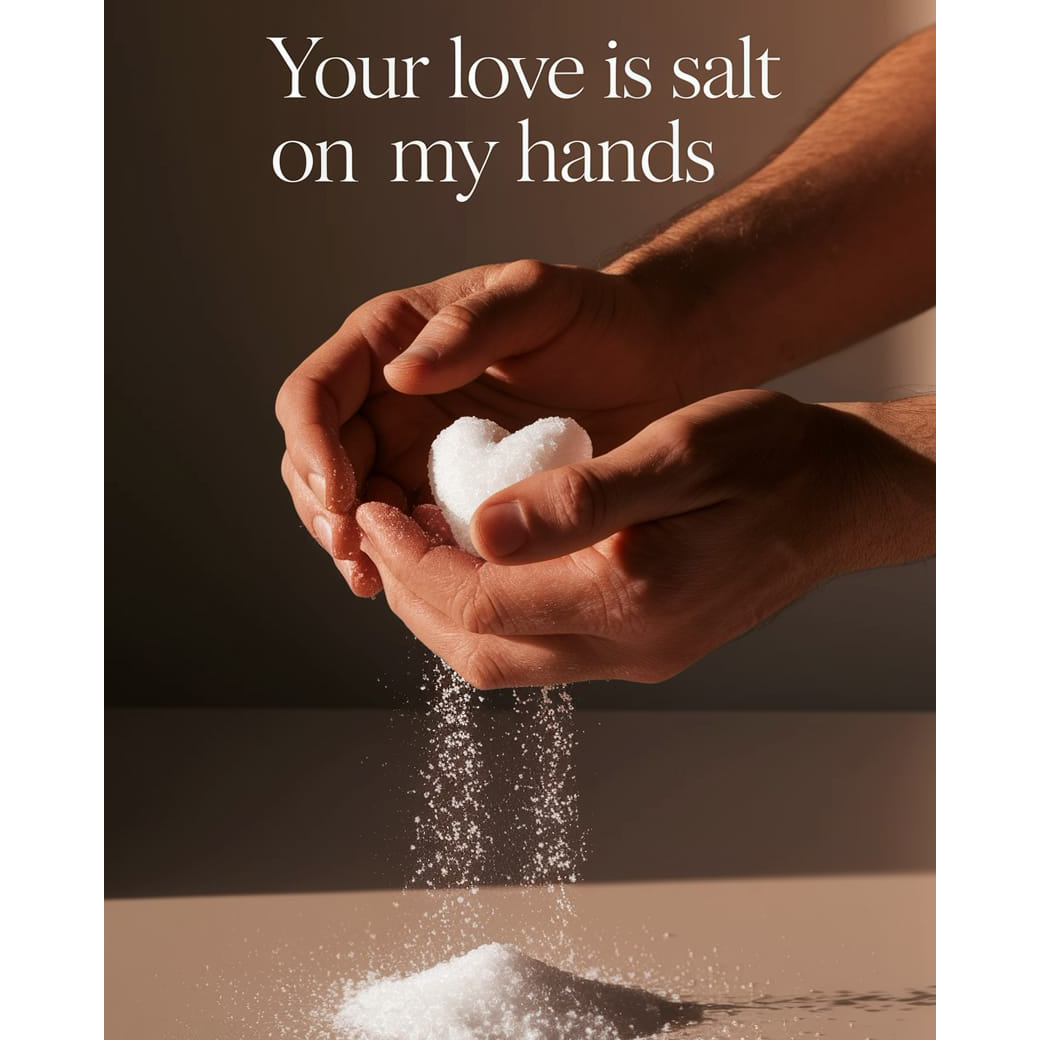 male vocals, modern sensual pop with subtle world music influences, deep pulsing bass, soft hand percussion inspired by middle eastern rhythms, muted frame drums, low tribal toms, intimate close but articulate male vocal delivery, controlled breath, clear consonants, minimal piano chords, warm analog synth textures, verse with sparse rhythm and tension, pre-chorus gradually adding percussion and bass movement, chorus opening wide with fuller low end and layered vocal harmonies, hook driven by rhythm and vocal repetition, bridge stripped back to percussion and voice, final chorus more intense but still restrained, intimate club atmosphere, physical and emotional tension throughout