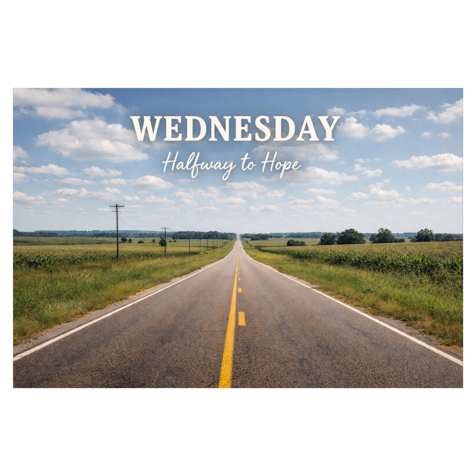 Upbeat modern country with acoustic drive, steady rhythm, light percussion, warm harmonies, and an encouraging, forward-moving feel designed to carry listeners through the midweek grind