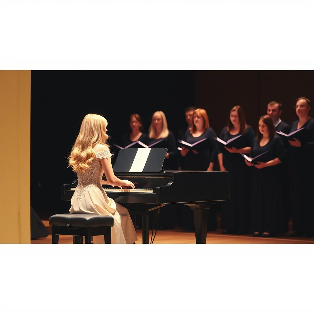 Warm piano introduces the melody, soon joined by lush orchestral strings, Soulful female lead vocals deliver melodic lines, supported by rich harmonies and a gospel-inspired background choir, The arrangement grows with subtle percussive elements, building a heartfelt crescendo, An optimistic, uplifting atmosphere sweeps through the live stadium, with audience clapping and jubilant cheers, The performance feels epic yet intimate, balancing unplugged authenticity with r&b and soul energy for a dynamic on-stage experience