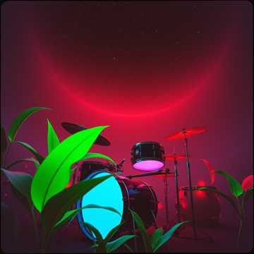 a wild edm grunge dubstep goa trance polyphony of emo rock singer girl playing african drums while a shoegaze style guitar hum solid math rock riffs
