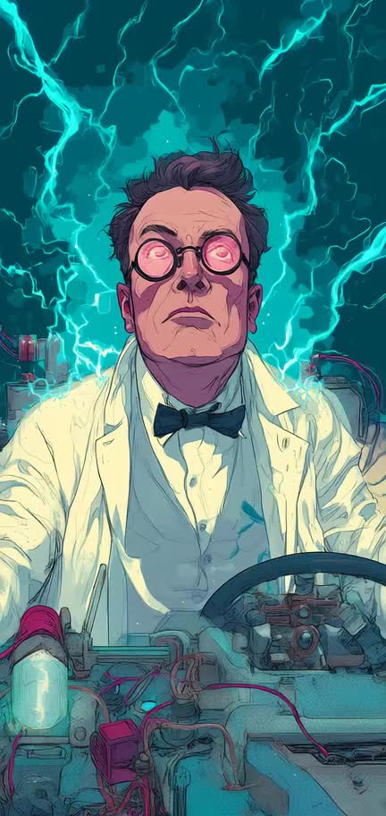“Quirky spoken-word edm acid jazz collage with funky bass, electro beats, and random vinyl crackle samples, breakbeat fusion, Story follows Dilon Musk, an eccentric tech mogul who builds rocket-powered skateboards, AI toaster orchestras, and a Tesla that can teleport through time, Layers of surreal dialogue: excitable news anchors, fake Tesla commercials (“Buy now, drive into the future!”), scientists arguing about whether Dilon’s moon colony needs a disco ball, Humorous interruptions like old-timey adverts, malfunctioning robots, and jazz horn bursts, Playful, rhythmic, and absurd, blending funky grooves with chopped-up voices and bizarre sound effects for a comedic, mixed with edm, cinematic journey, ”