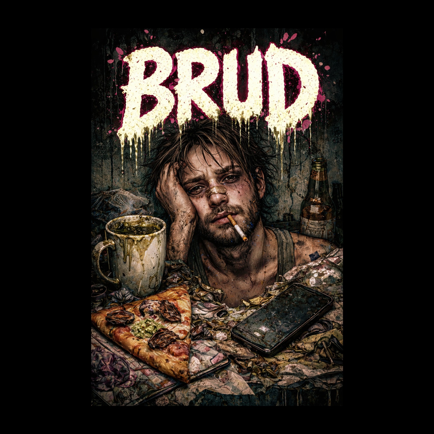 Ugly Experimental Garage Punk, out-of-tune piano, raspy accordion, distorted tuba, trash can percussion, cynical male vocals, raw lo-fi production, 110 BPM, Mood: Absurd, disgusting, intentionally chaotic, Sound aesthetic: A broken carnival in a muddy construction site