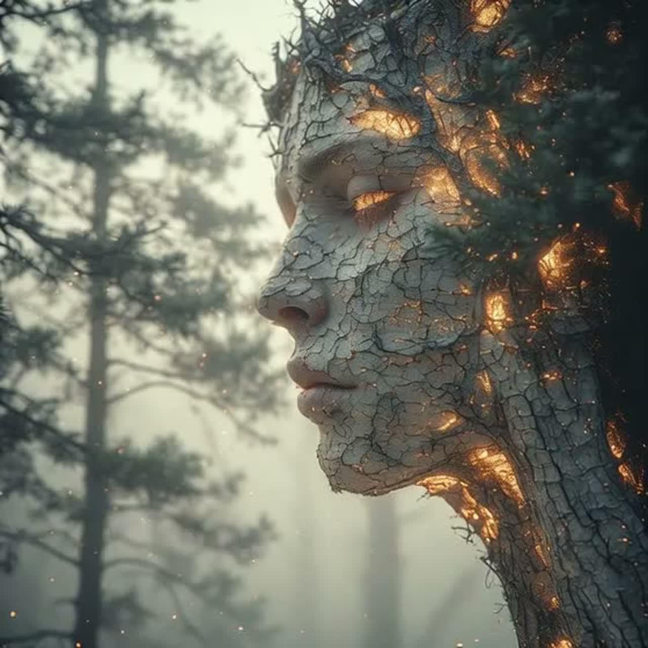Cinematic heavy bass-driven dark forest ballad, extremely powerful and pulsating doom bass completely dominating the entire song as the main rhythmic engine, crushing low-tuned rhythmic electric guitar riffs appear only in choruses and final refrain – tight, repetitive, heavy chugging downstroke patterns with strong groove and slight distortion, atmospheric clean guitars only as soft background texture in verses, subtle tribal bone rattles and distant creaking forest sounds, dark seductive slavic forest horror atmosphere full of dread and intimacy, deep male melodic singing vocal with emotional flowing melody and soft growl accents throughout the whole song (continuous sung performance, no spoken or rap parts), haunting atmospheric female layered harmonies and witchy backing vocals only in choruses, massive emotional choir in final refrain, strong contrast between beautiful haunting melody and ugly dark lyrics, heavy hypnotic bass-and-riff groove around 78 BPM, oppressive yet seductive