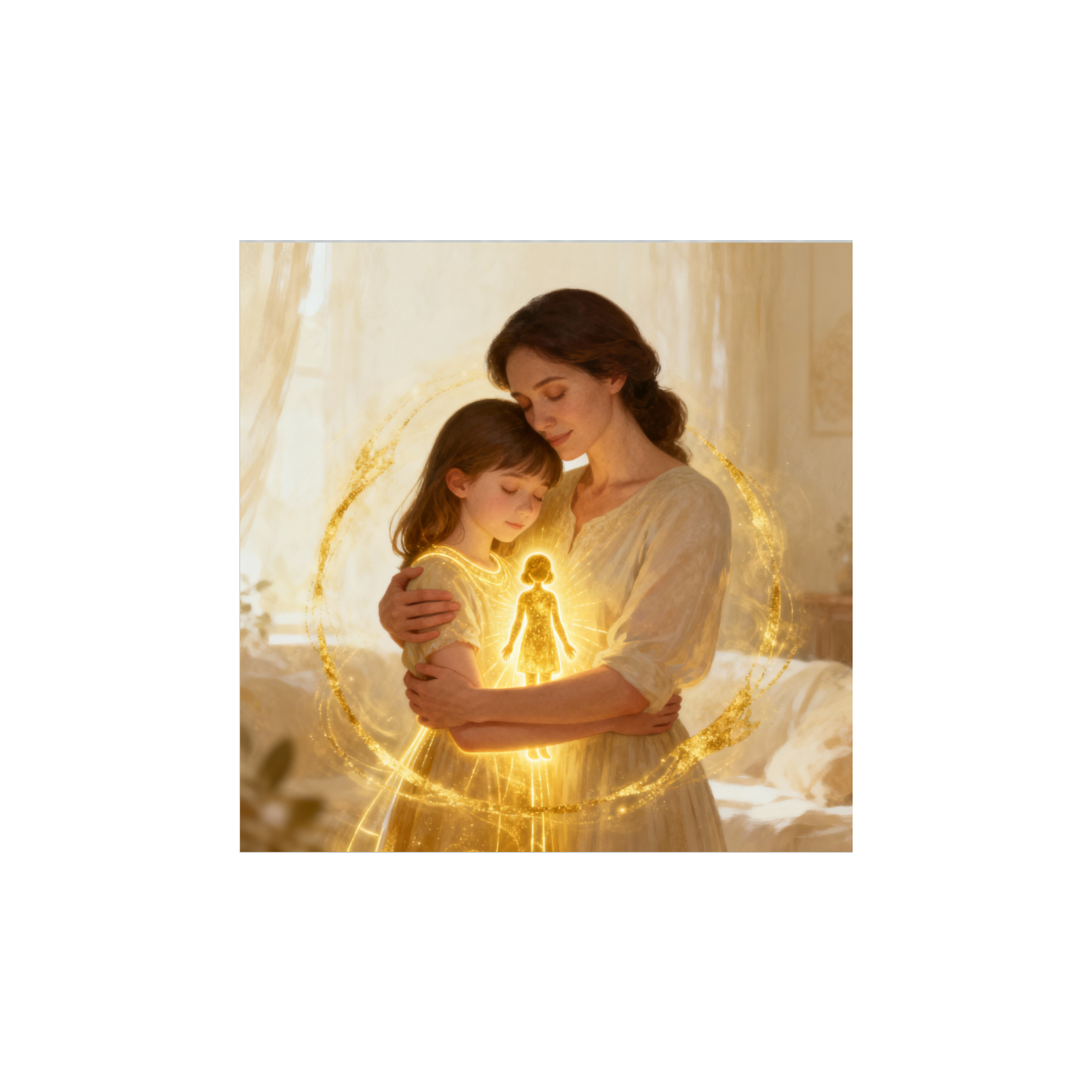 French female vocals, cinematic ambient with healing energy, Emotional piano + strings, soft ambient textures, gradual orchestral build-up, Structure: fragile intro → tender verses with warmth → soaring healing chorus with choir-like harmonies → cosmic bridge with ethereal synths → grand final chorus → gentle ambient outro, Mood: universal, maternal, healing, luminous