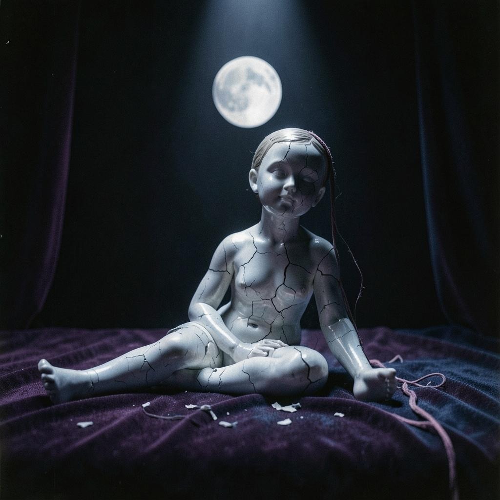 spoken word podcast, female voice, all vocals spoken not sung, clear and crisp vocal, close mic, storytelling narration, slow tempo around 100 BPM, deep soft bass, ambient pads, minimal instrumental, low background music, mysterious and melancholic mood, dark feminine energy, dramatic pauses, expressive timing, soft reverb, immersive atmosphere, voice upfront and very clear, high clarity narration, no singing at any moment, spoken narration only, emotional progression from fragile to empowered, cinematic tone, professional podcast style