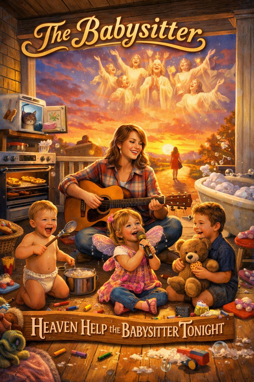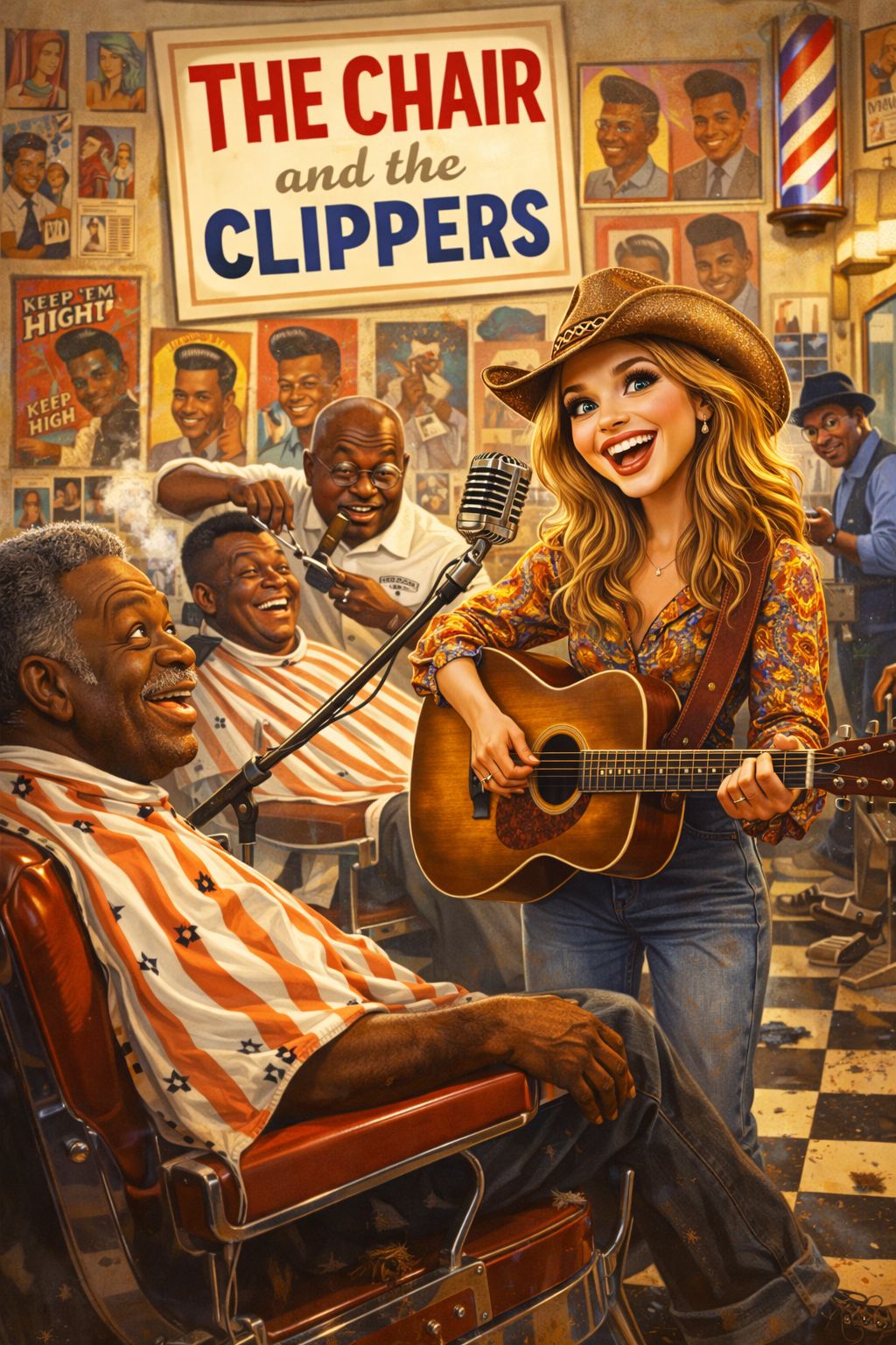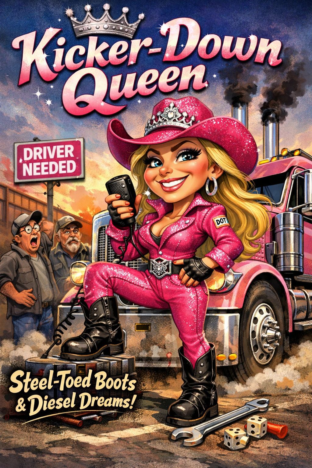 Energetic modern Country with a playful, humorous feel and lively barroom vibe, driving rhythm and warm organic instrumentation, Mid-to-fast tempo around 140 BPM, Key G major or another bright key suited for catchy hooks, Instrumentation: steady country drum groove with punchy kick and snare, warm electric or upright bass, bright acoustic guitar strumming, twangy electric guitar licks, expressive fiddle with cheeky accents, pedal steel swells for classic flavor, banjo or mandolin for bouncy rhythm, honky-tonk piano riffs, light barroom crowd ambience, subtle reverb evoking open highways and small-town stages, Vocals: powerful expressive female lead with witty storytelling, playful backing harmonies or duet-style responses, humorous call-and-response, catchy sing-along choruses with clever punchlines, confident tongue-in-cheek tone, comedic spoken asides and personality-driven ad-libs