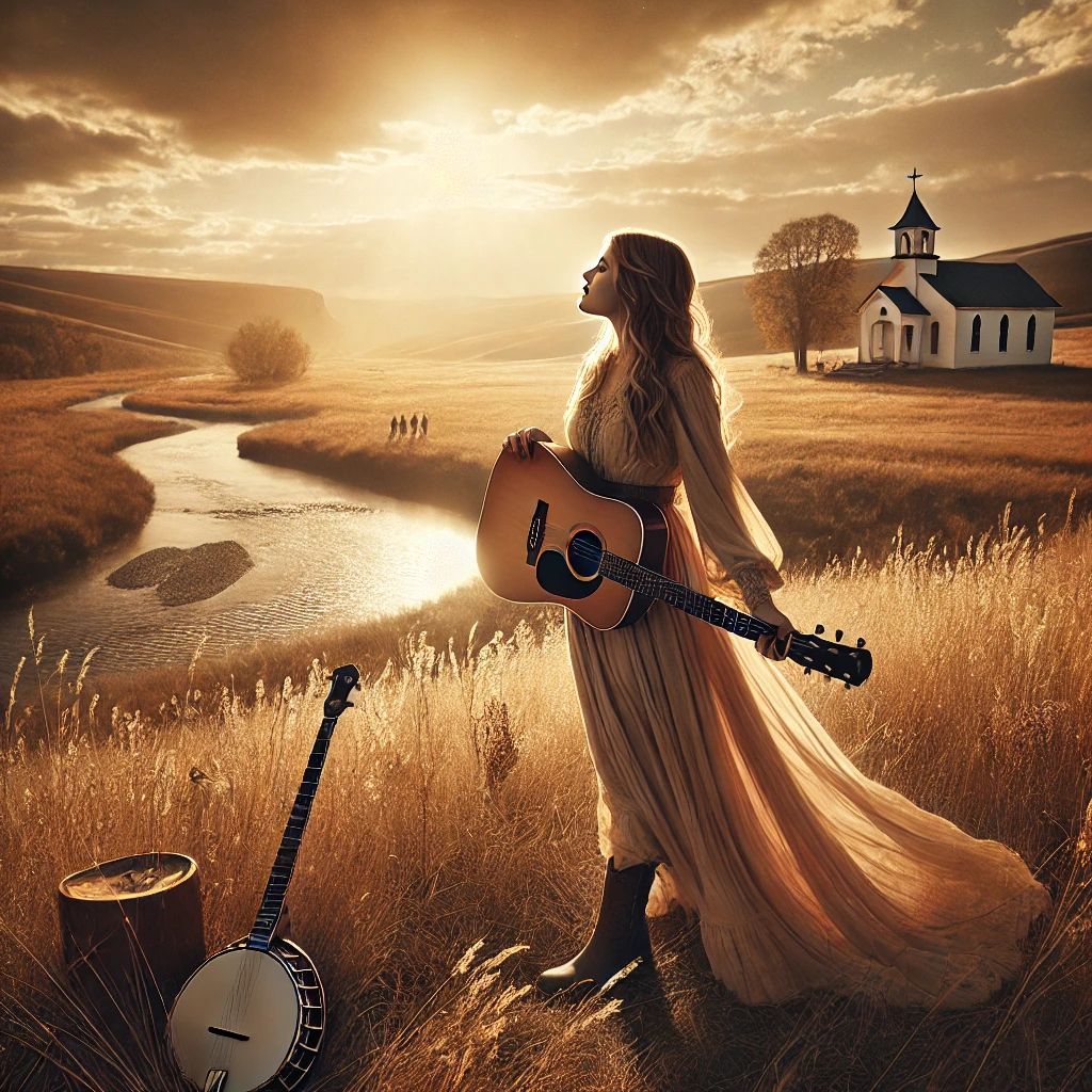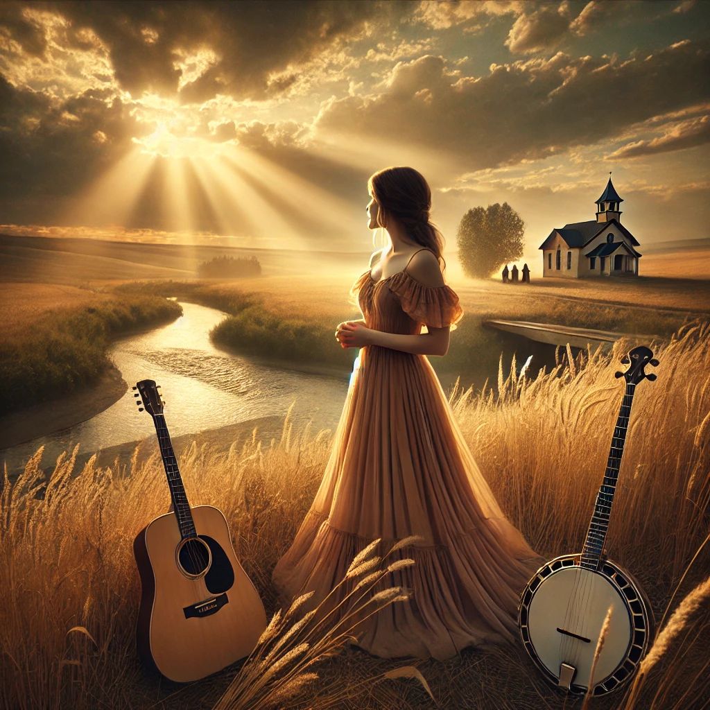 A country-opera fusion led by heartfelt female vocals that blend soulful southern warmth with classical power, Fingerpicked acoustic guitar and gentle piano lay a rustic foundation beneath sweeping strings and pedal steel swells, The verses remain intimate and storytelling-focused, while choruses rise with operatic grandeur and layered harmonies, creating a dramatic yet deeply emotional journey through love and longing