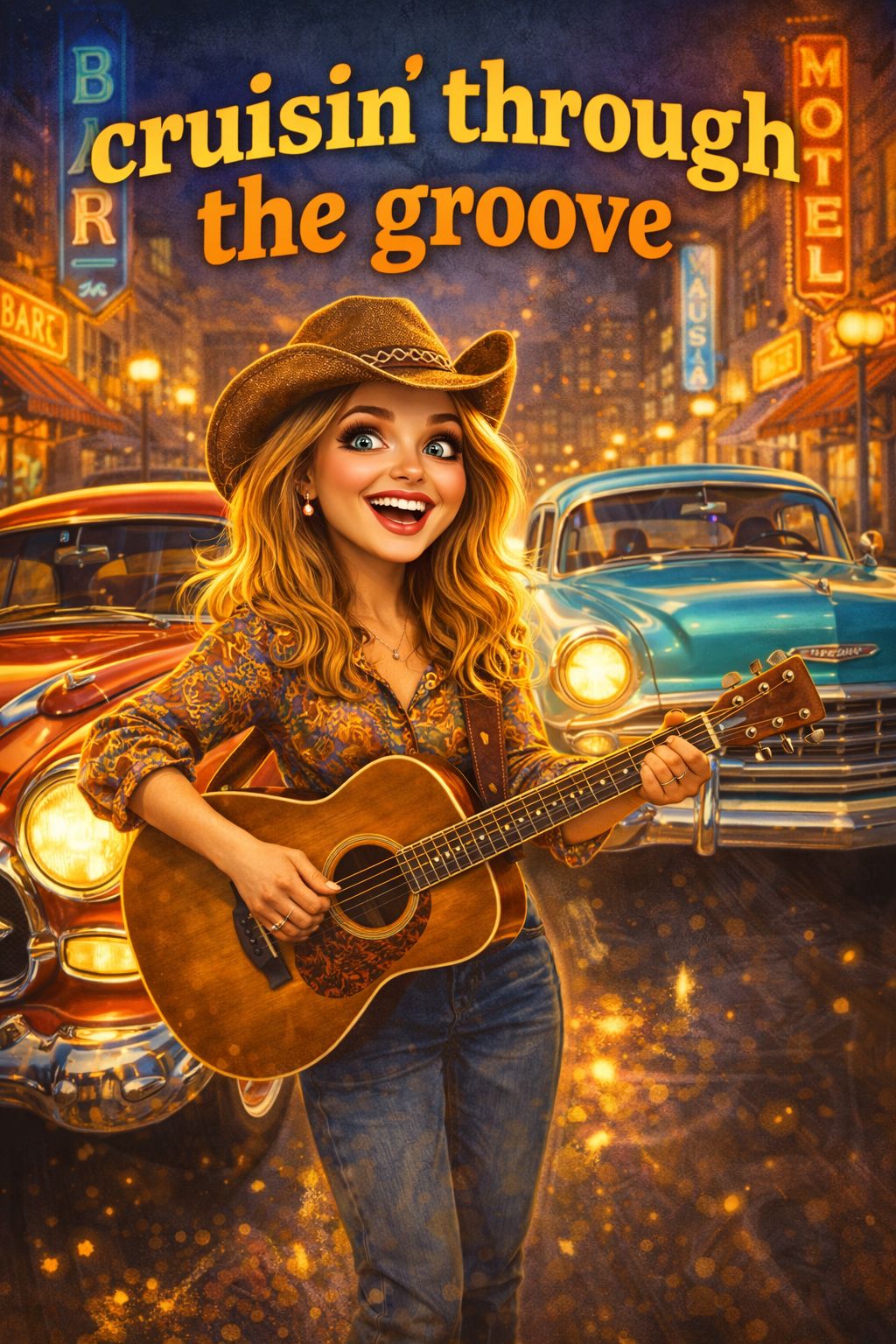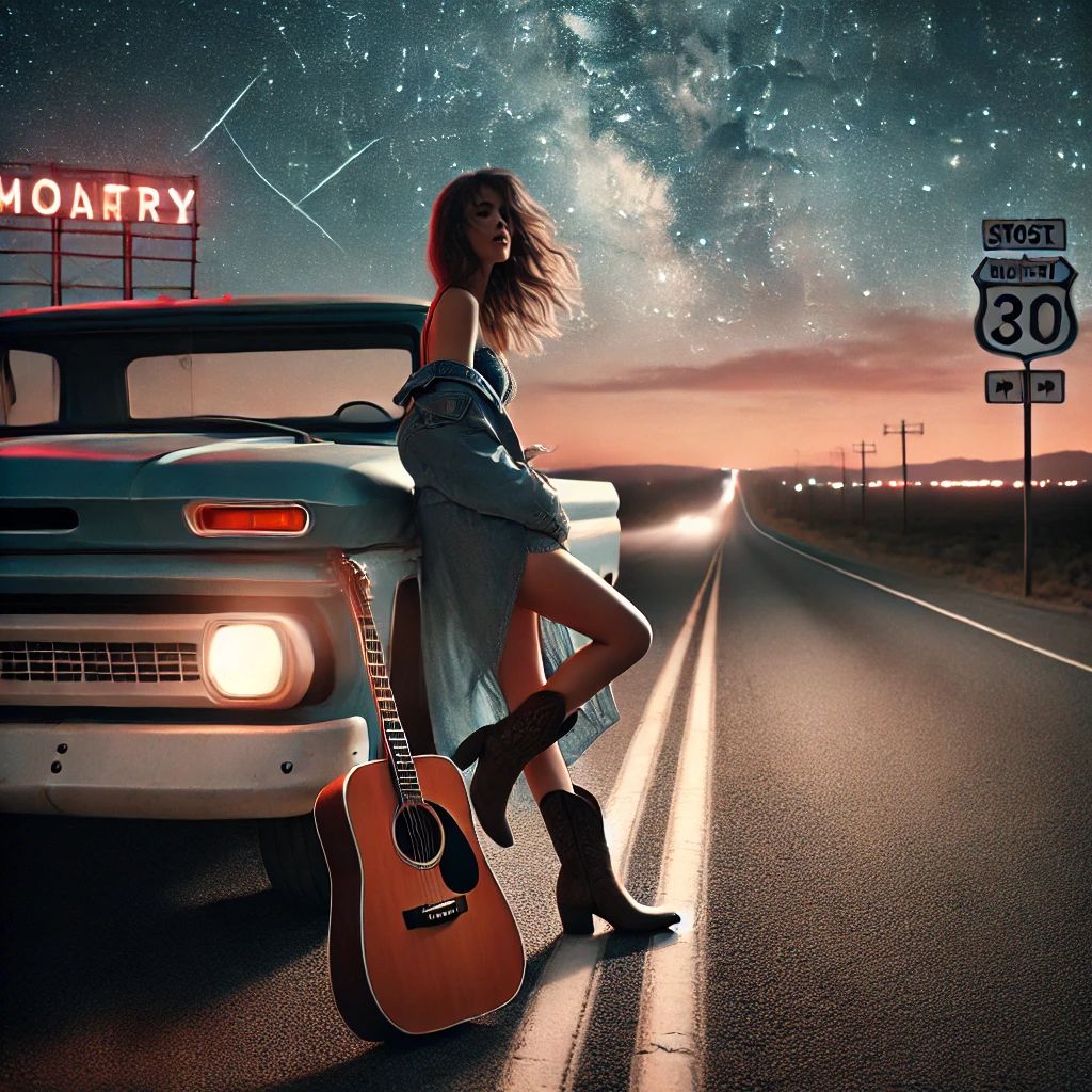 *"Upbeat modern country-pop song with a bright, energetic vibe, Female Vocal, Lyrics about falling for someone with a 'neon heart'—playful, romantic, and full of sparkling imagery, Think driving with the top down, dancing under bar lights, and a chorus that soars with warmth and joy, catchy melody, and a feel-good rhythm perfect for summer nights, "*