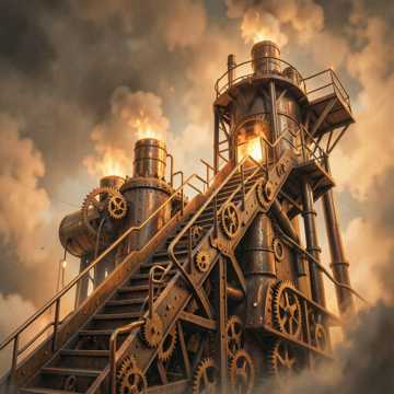 [Industrial Math-Rock] [Interlocking 7/8 time signature] [Clean, staccato 6-string tapping] [Clanging metallic hits on the off-beats] [Steampunk aesthetic] [Fast and precise]