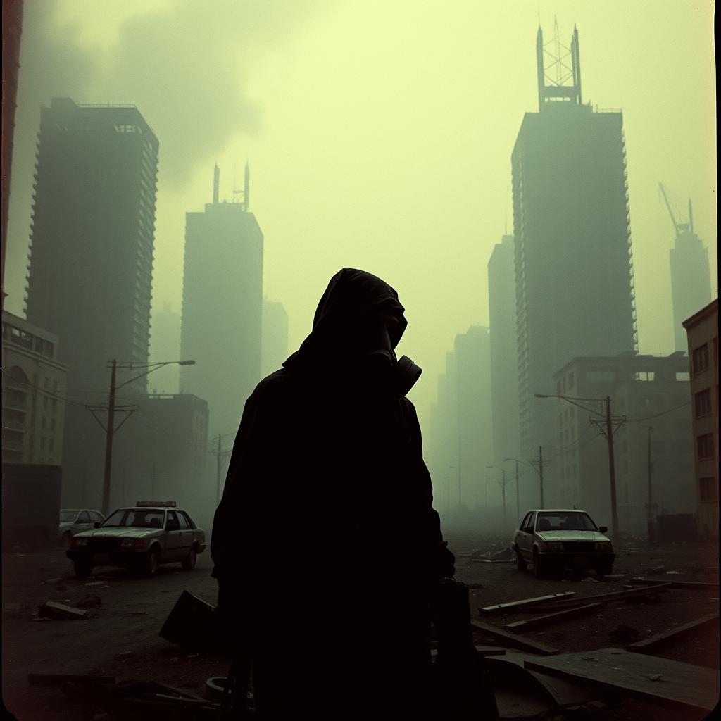 A dark electro-swing foundation merges with brushed swing drums, upright bass walking tightly, and analog synth pads sustaining a noir atmosphere, Muted trumpet punctuates verses with cool dissonance, Male vocals deliver lines with aristocratic calm, occasionally echoed by robotic backing voices for key phrases, Vinyl crackle and low choir stabs add post-apocalyptic texture, Mechanical SFX layer subtly beneath, heightening the sense of calculated, icy luxury