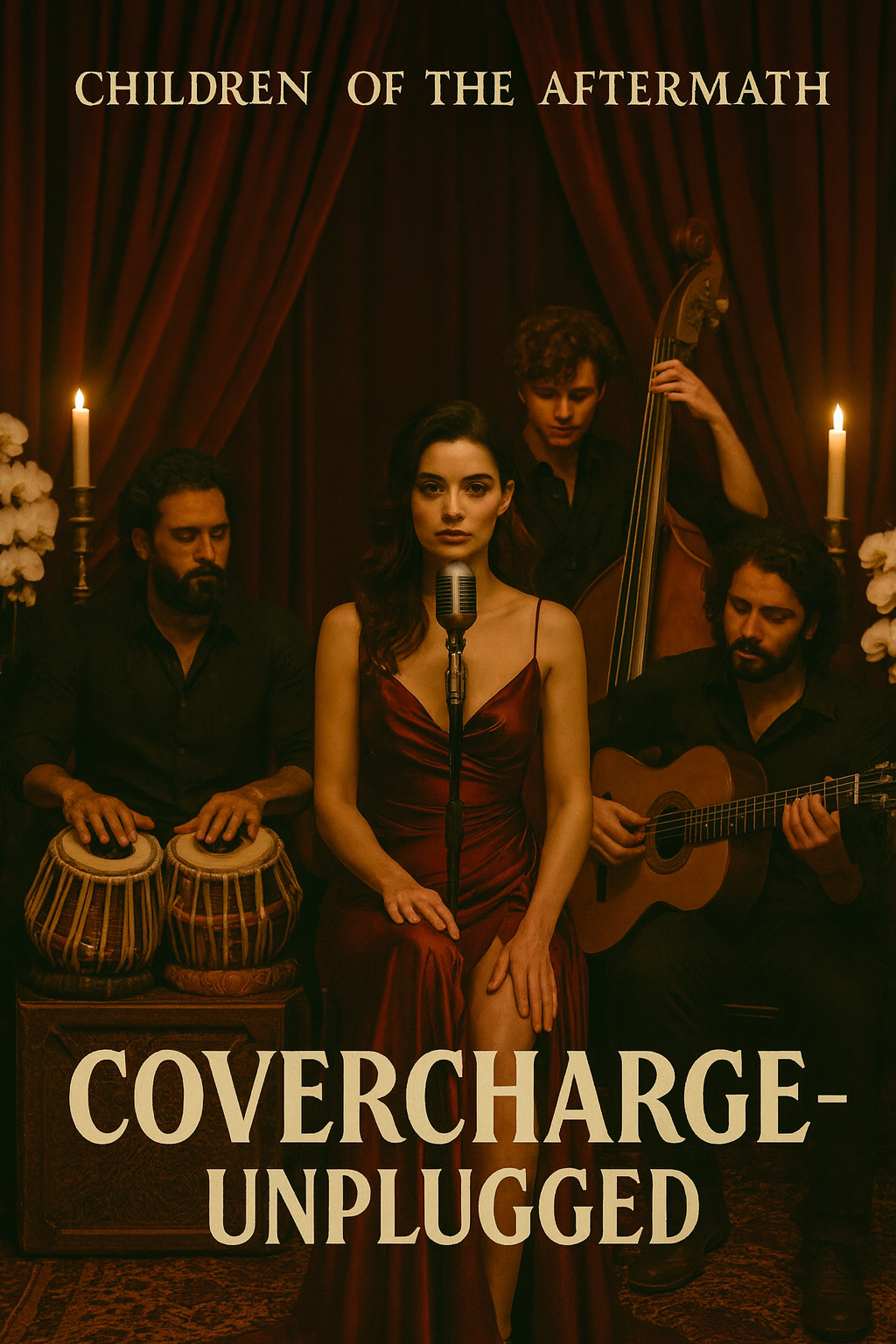 The unplugged live setup opens with warm upright bass and subtle piano chords, joined by soft cajon and tabla rhythms weaving a delicate, organic texture, The doubled baritone male vocals cut through, bold and rich, accentuating intensity, Dynamics ebb and flow, soulful and captivating