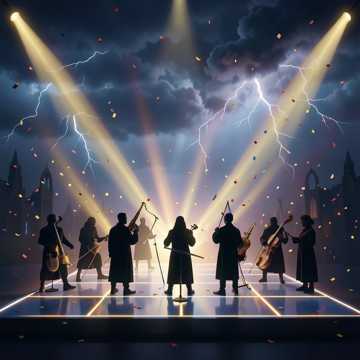 jazz, hardcore / Gabber / frenchcore / hardstyle hybrid with female vocals; 200+ BPM slam, swung kick-row energy and bright trance leads, Air raid siren Verses start on filtered 40s doo-wop-style guitar and brushed snare illusion, then smash into full-stack distorted kick, 808 synths and buzzing bass, Chorus explodes like a rave gospel choir over soaring violin, Highland bagpipes, airy flute and didgeridoo drone, Techno stabs answer the vocal hooks; last chorus stacks gang vocals and octave doubles for a true festival anthem feel, violin, techno, gospel, hardstyle, uplifting, trance, swing
