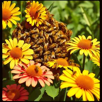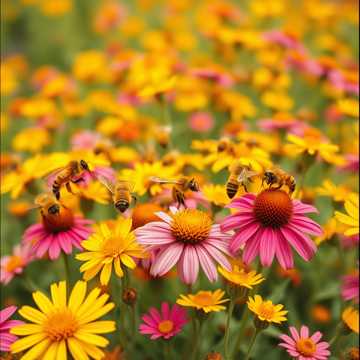 Latin Samba → congas, shakers, brass hits, rolling rhythm = matches the busy buzz of bees