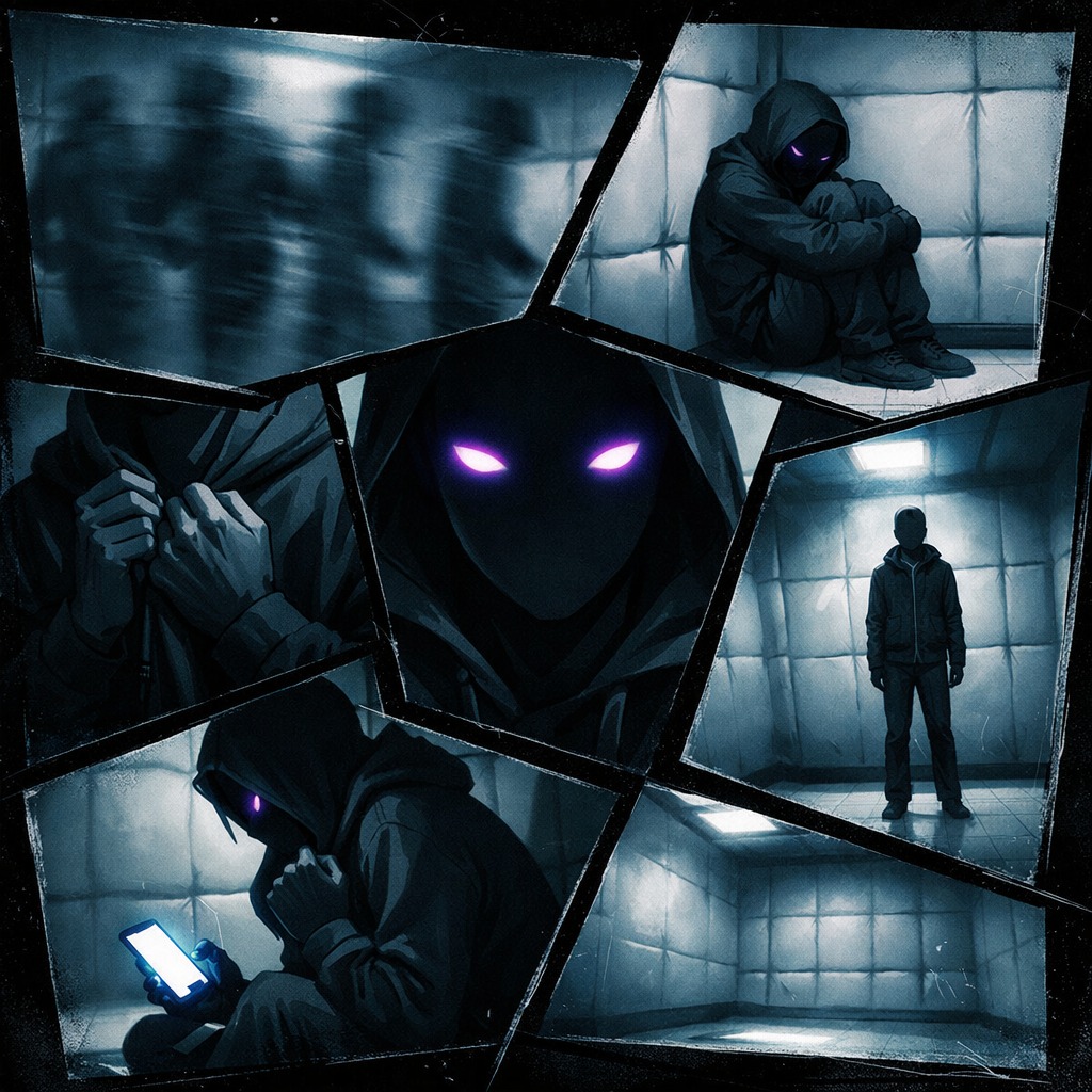 This track blends dark melodic rap with anxiety-driven atmospheric trap, built around tight, suffocating pads, low distorted bass pulses, and minimal drums that feel restrained rather than energetic, The rhythm stays tense and repetitive, mimicking pacing thoughts during a panic episode, Subtle heartbeat kicks, breath sounds, rising noise swells, and phone-call interruptions heighten the claustrophobic feel, Vocals are close, shaky, and slightly overcompressed, with light autotune and narrow reverb to keep them trapped in the listener’s head, Dynamic shifts come from intensity rather than melody, creating a looping sense of panic with no clear release