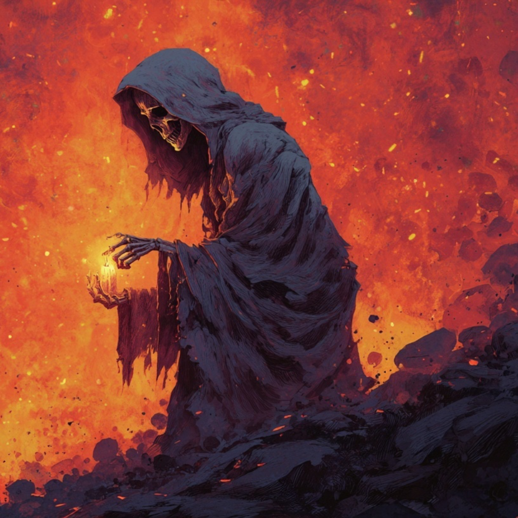 Dark Cinematic Metal × Gothic Orchestral Fusion at 100 BPM — slow, heavy, and majestic, Massive drums, strings, and choirs replace frantic guitars with towering, emotional weight, Feels like a requiem for the fallen, not just their rebirth