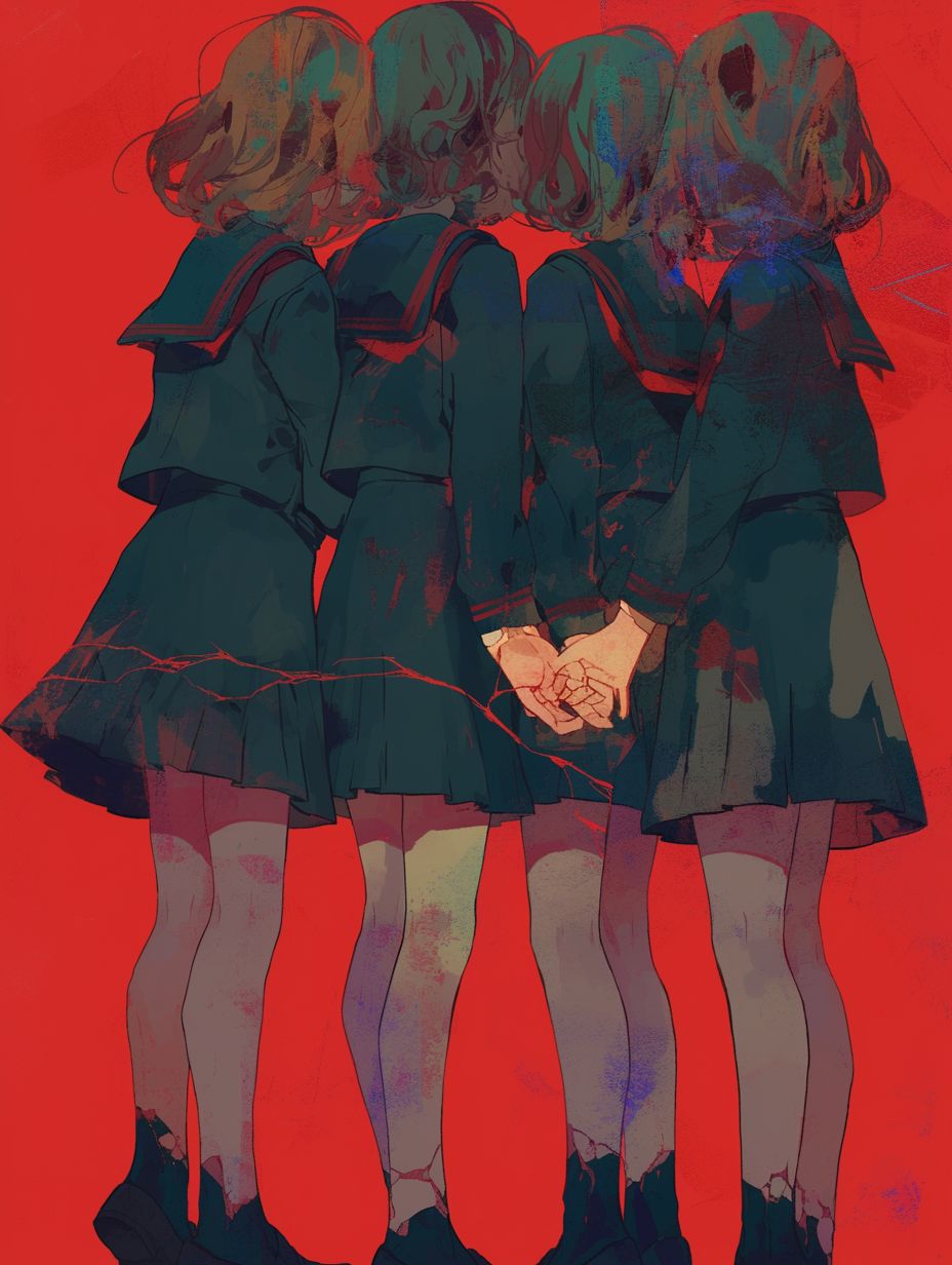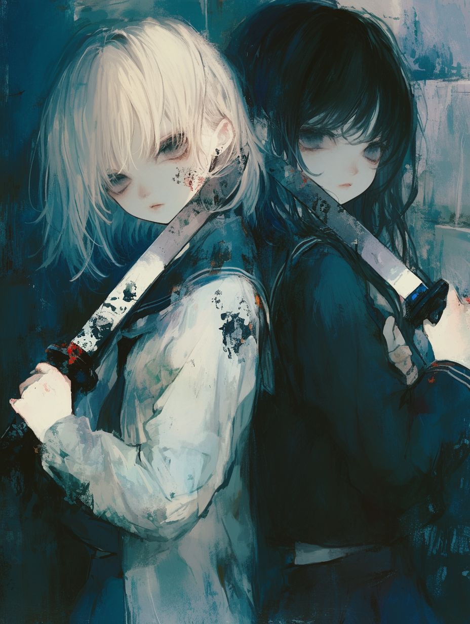 transparent and fragile female vocal, Japanese lyrics, bittersweet and tense atmosphere, inspired by two young female misfits working as hitmen, unpredictable and cinematic song structure, shotgun-like explosive sound textures in drops, chorus with memorable yet unsettling catharsis, mix of nihilism and fragile intimacy, math rock influence with dry and cutting clean guitar riffs, distorted and gritty bassline, syncopated edgy percussion with sudden bursts like gunfire, lo-fi raw recording texture with slightly distorted mix, chord progression: F – G – Am – Em repeating