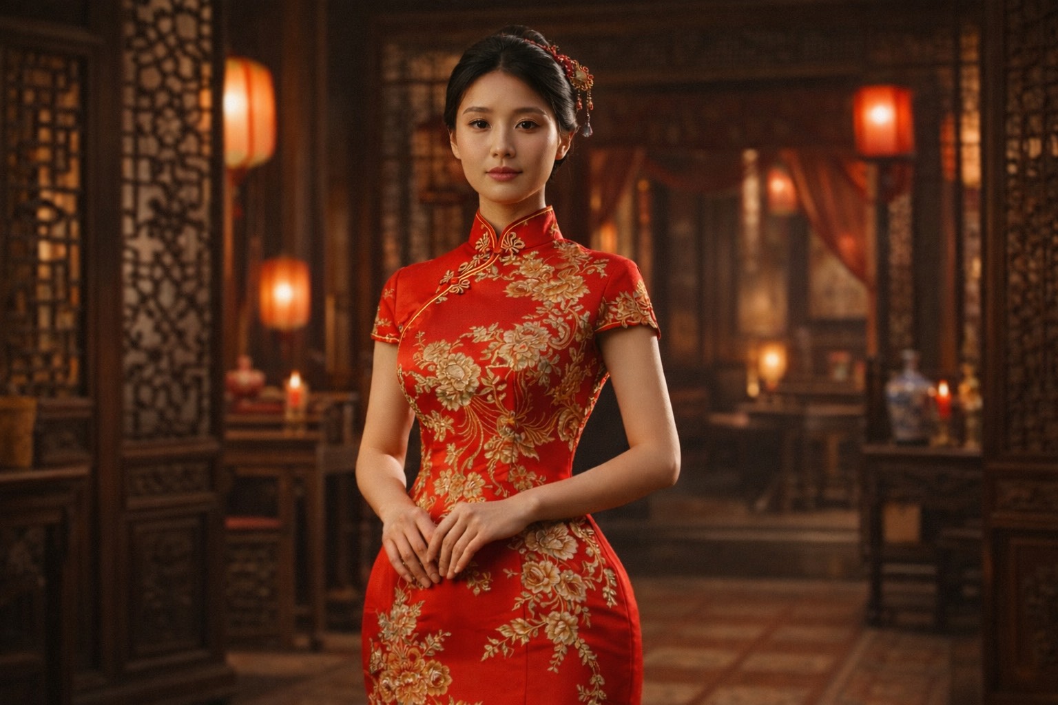 A high-energy, festive East Asian pop track blending traditional Chinese instrumentation with modern electronic dance elements, The arrangement features prominent guzheng and dizi flute melodies layered over a driving 4/4 house beat with a tempo of approximately 128 BPM, The production is polished and bright, utilizing side-chained synth pads, crisp electronic percussion, and deep sub-bass, The vocal performance consists of a powerful female lead with a clear, resonant tone, supported by a large, energetic mixed-voice choir during the anthemic choruses, The song structure follows a standard pop format with a dramatic build-up in the pre-chorus leading to an explosive, celebratory drop, Traditional percussion like lion dance drums and cymbals are integrated into the rhythmic breaks to enhance the New Year festival atmosphere, The harmonic language is primarily pentatonic but incorporates modern pop chord progressions in a major key