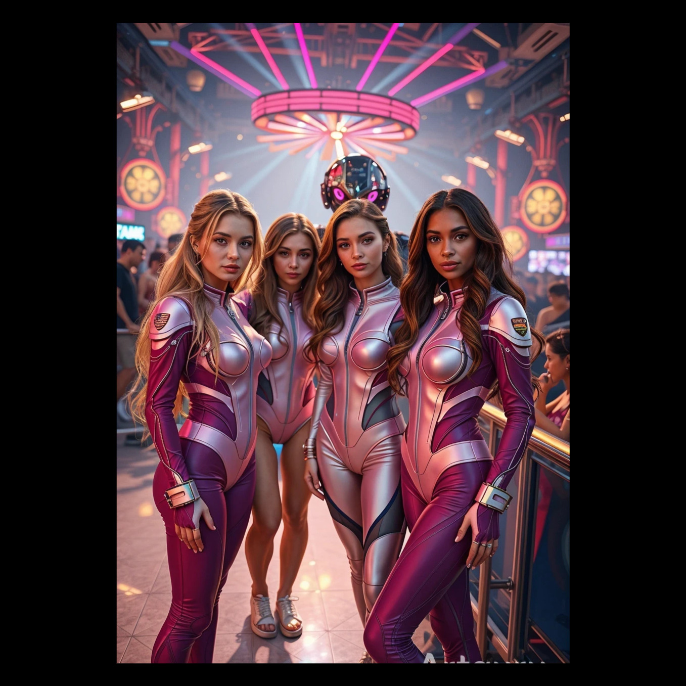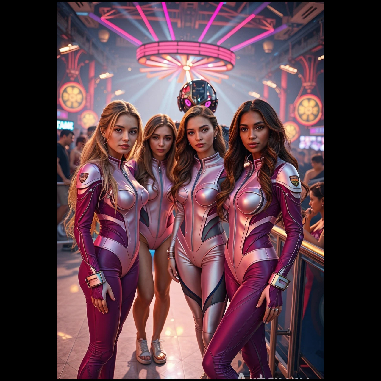 R&B, 99 bpm, girl group with four young women in different tones and lengths, hip hop flow, female voice, female voice effects, FX effects, TR 808 Only the bassline is modern; the rest is modern, Bass Trap, Melodic Rap, Hip-Hop, Edm, Groovie, Sultry Female, Echoes, Whispers, Moaning, Sexy, Glitchy Fx, Mood: Forbidden And Sultry, Erotic Live Performance, tight drum grooves, and punchy backing vocals, include soulful attitude and dynamic transitions into rap breaks, vibrant bassline, rich harmonies, rap, r&b, 2023s-inspired r&b, smooth vocal acrobatics with melismatic runs, vocal, breaks, and atmospheric synths drive the track, real R&B club hit with solo drop rhytm for mixing, passionate chorus vocals and playful female FX for added texture, Airy pluck synths, subtly distorted, interplay with chopped and reversed vocal textures, Every section features only premium, high-end synth textures