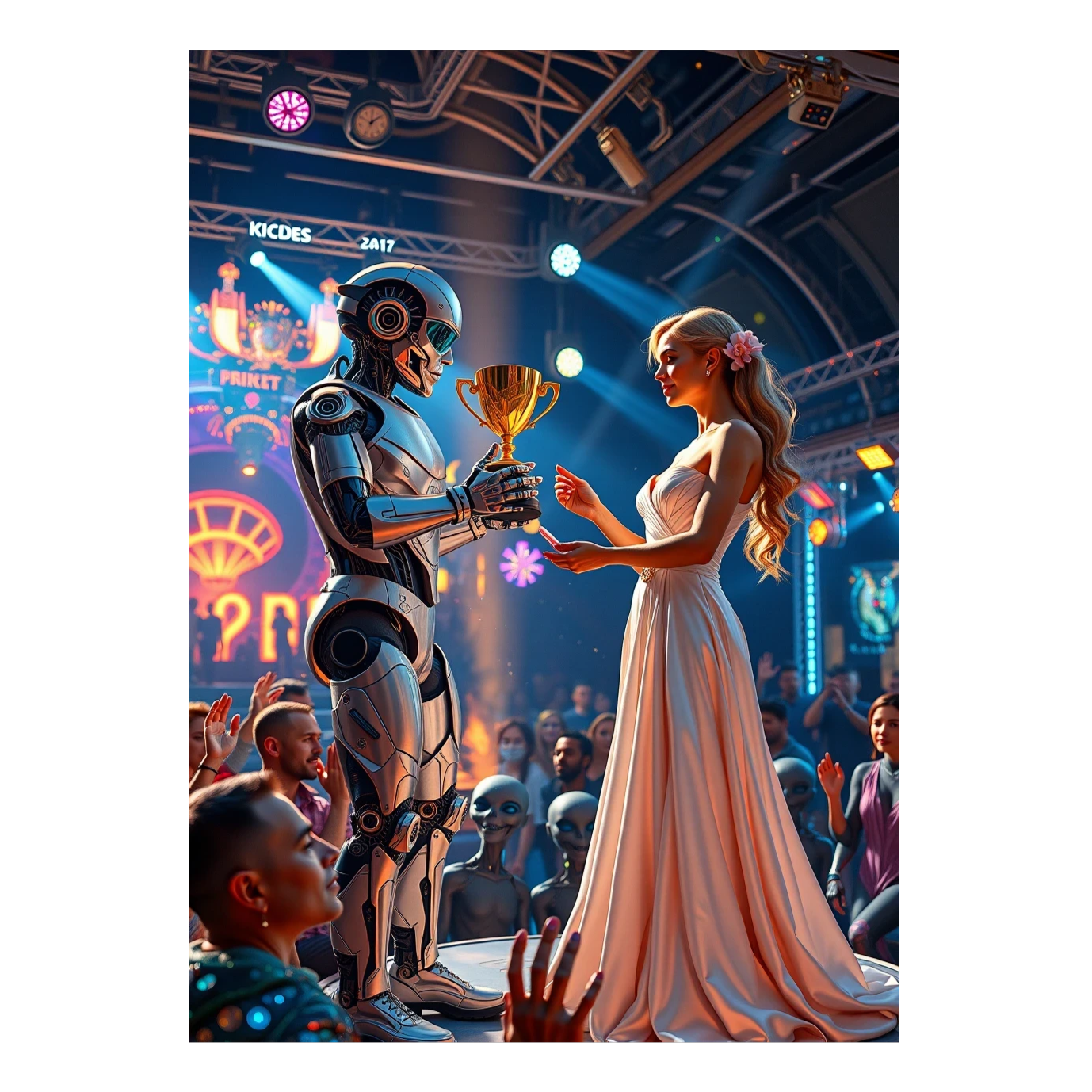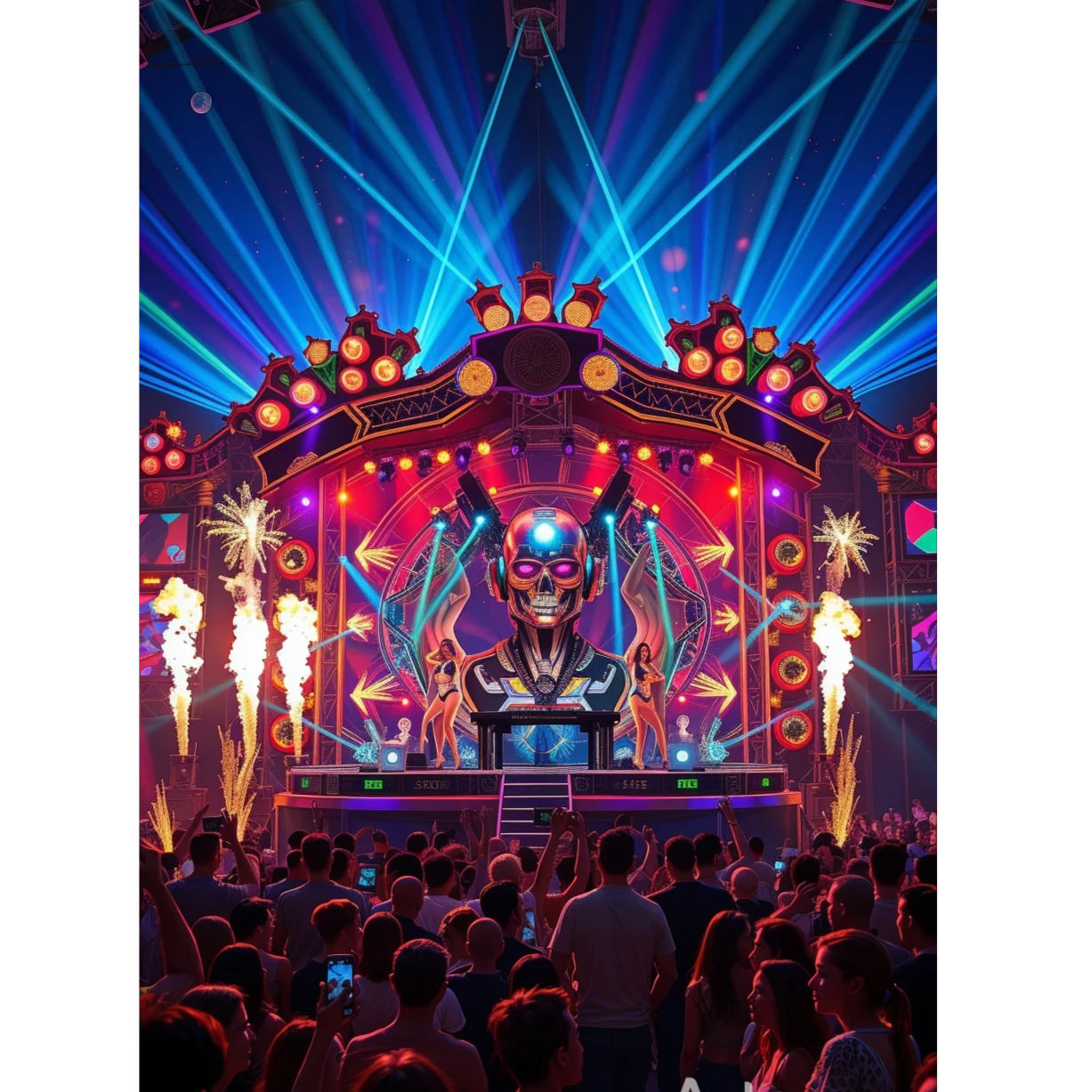 The track unfolds at 142 bpm with relentless minimal techno beats and a growling hard bassline, Pulsing arpeggiators introduce a trance flow, punctuated by a pizzicato synth melody, The chorus explodes with processed female vocals, layered with creative effects, A dramatic drop spotlights a solo arpeggiator before wobble synths and a breakbeat section raise the energy, seamlessly cycling between driving grooves and ethereal trance textures, uplifting trance