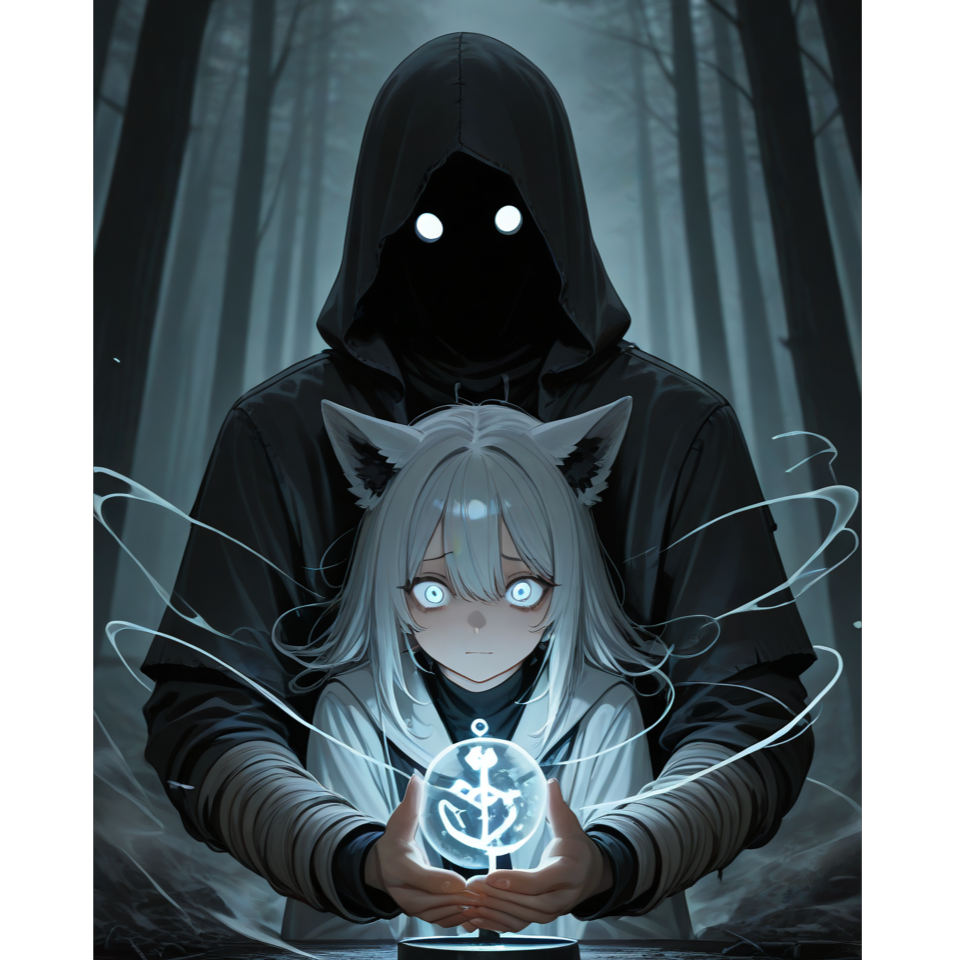 and haunting melodies create an otherworldly, vocaloid-inspired production with a sharp, electronic, cinematic feel, robotic texture, layered synths, dramatic, glitchy beats, futuristic