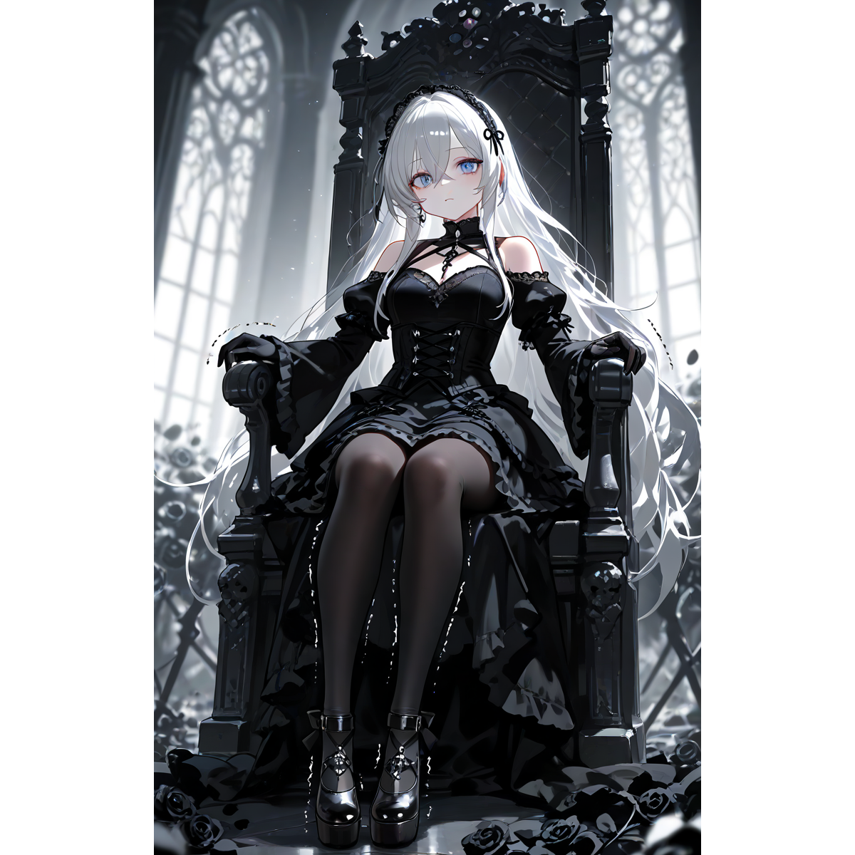 grandiose with organ and choir, whispery vocaloid tone to enhance aesthetic darkness, gothic metal, symphonic