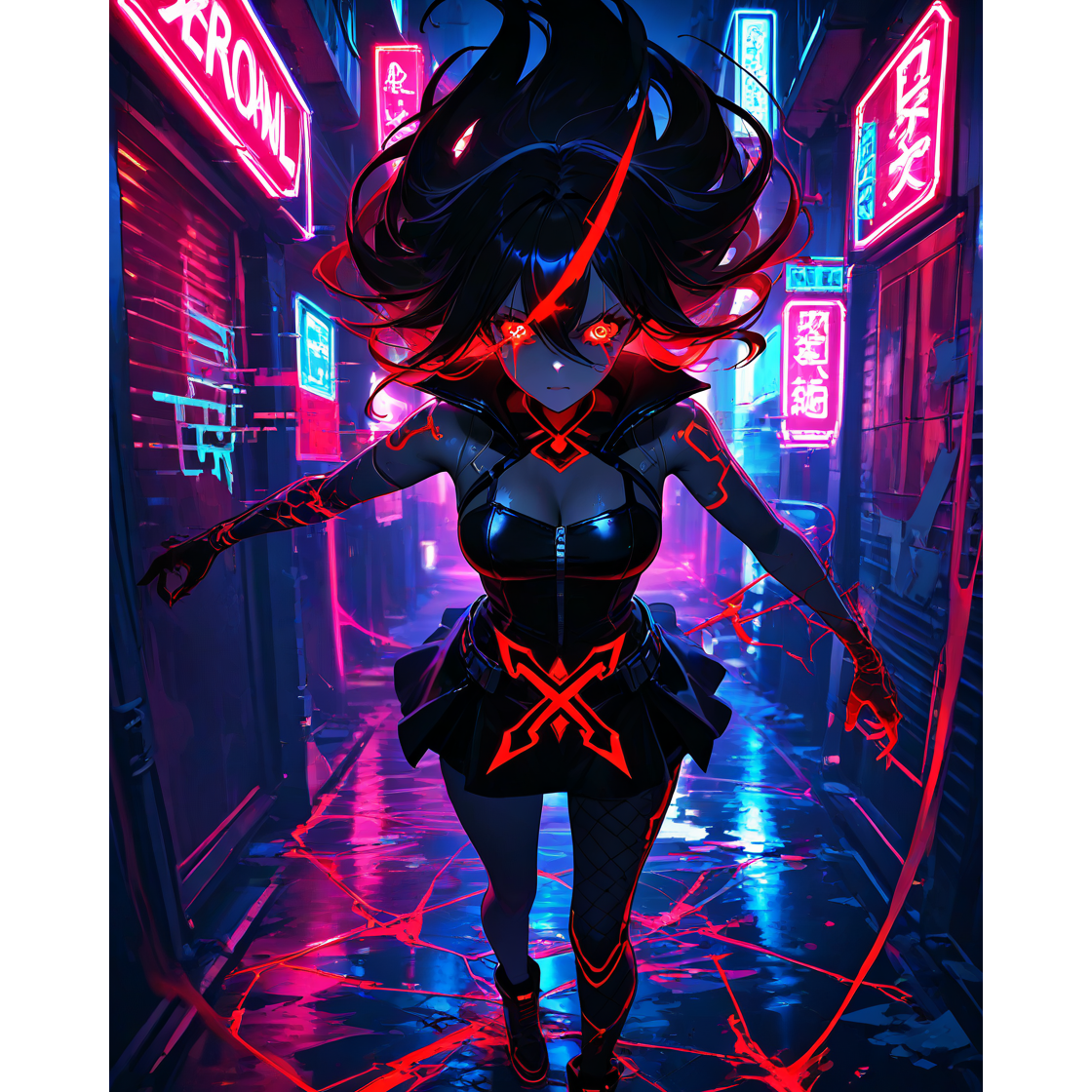 Dark Cyber Rock with Hard Electric Guitar, Industrial Electronic Beat, Female Vocals, Intense and Futuristic Atmosphere