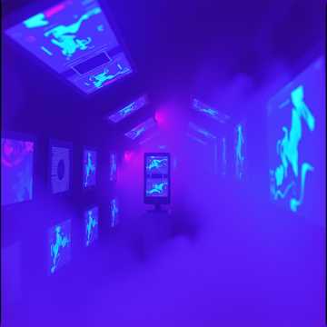 with a surreal and mysterious atmosphere, electro dance, eerie synths, driving beats