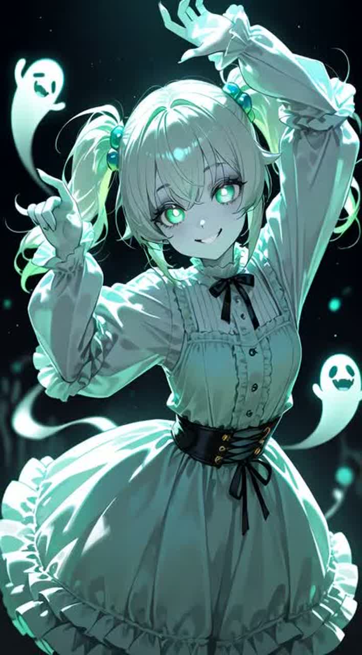 Whimsical Halloween Pop with playful synths, bell patterns, gentle acoustic guitar, BPM 98, Female Vocals, Dreamy and Light-hearted