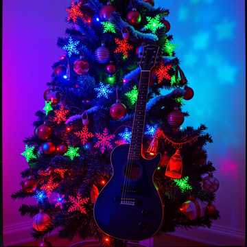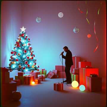 A high-energy Christmas pop-rock song with a driving beat and a crooner baritone male lead vocalist, The instrumentation includes electric guitar, bass guitar, drums, and synthesizers, The song features a clear verse-chorus structure with a bridge and an instrumental break, The tempo is upbeat, and the key is major, contributing to a festive mood, The lead vocal is clean and melodic, with occasional ad-libs, Production is bright and polished, with a clear mix that emphasizes the lead vocal and drums, The electric guitar provides rhythmic strumming and occasional melodic fills, The bass guitar lays down a solid, driving foundation, Synthesizers add atmospheric pads and melodic counterpoints, The drums provide a consistent, energetic backbeat
