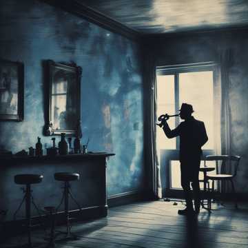 male vocals, blues rock, dark baritone saxophone electro swing, eerie, melodic, heavy electro saxophone blues, intense