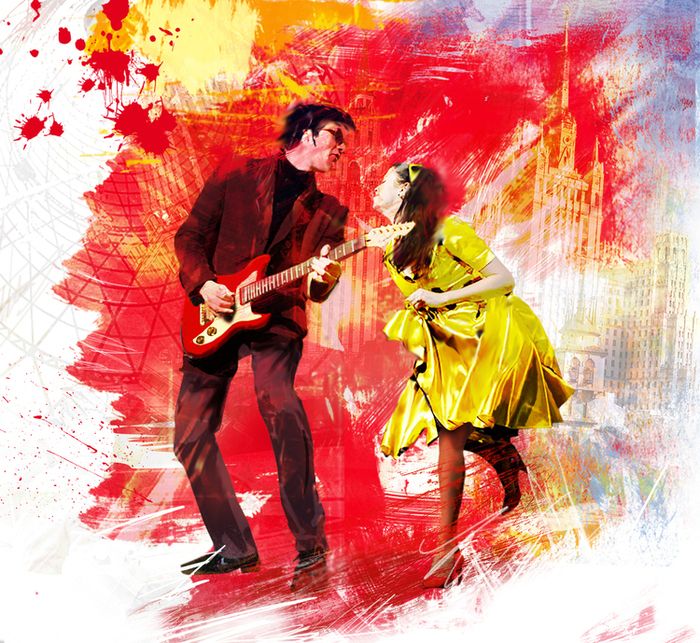 rhythm of the 1960s, Rockabilly / British rock'n'roll of the 1960s, early rock'n'roll, stringy electric guitar riff, British rock'n'roll of the 1960s, bass, shuffling drums, energetic and unbridled, with an upbeat tempo of about 140 beats per minute, vintage electric guitars with a crisp rhythm and a ringing lead, simple drums with a sharp small and steady beat, a walking bass line, loud male vocals in the style of "call and answer", sounding in the spirit of the early Beatles, bright organ accents