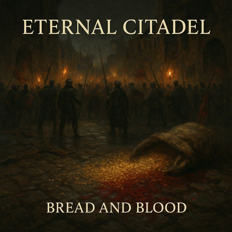 Mid-tempo power-thrash heavy metal with a solemn, forward-moving feel, Steady, driving rhythm guitars and firm drums create a sense of inevitability rather than urgency, Vocals should be clearly sung with controlled emotion and dignity, conveying duty and resolve instead of sorrowful narration, Verses should feel restrained and thoughtful, while the chorus is melodic, strong, and uplifting without becoming triumphant, Overall mood is quiet resolve, historical weight, and commitment to responsibility