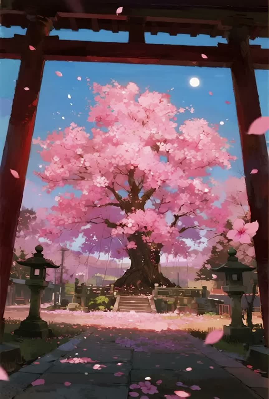 Cinematic orchestral soundtrack inspired by a thousand-year cherry blossom tree, slow to mid tempo around 110–120 BPM in C major or A minor, Emotional, spacious, and timeless atmosphere, Intro minimal with ambient wind, distant bell tone, and delicate piano motif, Gradual legato string swell with warm cello foundation and high violin tremolo for subtle petal-like shimmer, Very soft heartbeat-style low percussion, no heavy electronic elements, Chorus expands into wide orchestral bloom with layered strings, gentle timpani pulse, airy female backing vocals, and deep cinematic reverb, Bridge removes percussion, focusing on piano, high strings, and choir-like pads for suspended emotion, Natural dynamic flow, organic mix, warm and immersive, poetic historical tone, reflective yet powerful, sense of time passing and enduring presence