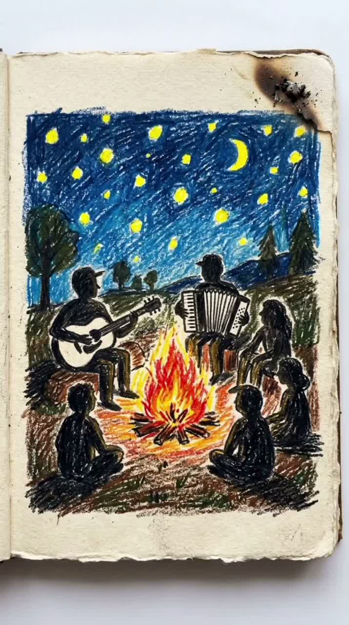 Acoustic campfire folk with brushed cajon pulse, upright double bass warmth, and fingerpicked acoustic guitar; verse stays close-mic and conversational, pre-chorus opens with handclaps and a lifted harmony, chorus blooms in gang vocals around a simple chant, Ear candy: ember crackle transitions, a soft breath of fiddle at section turns, and a final key-change feel from stacked voices, Earthy, intimate, warm and woodsy mix, warm, folk, acoustic