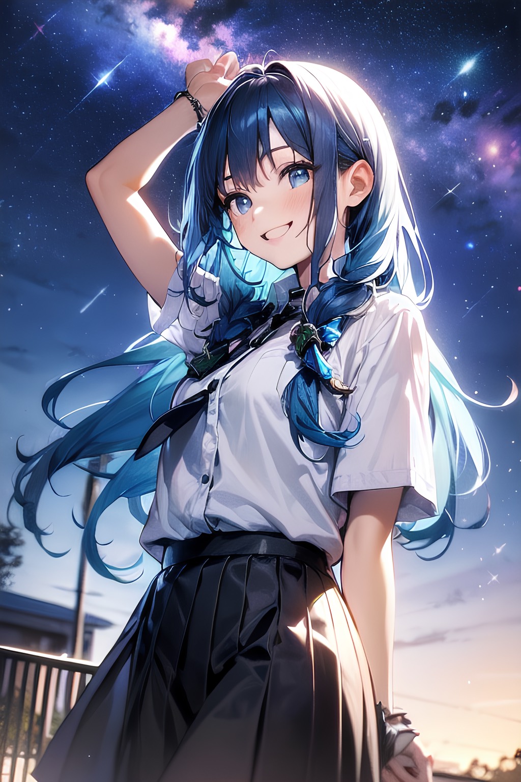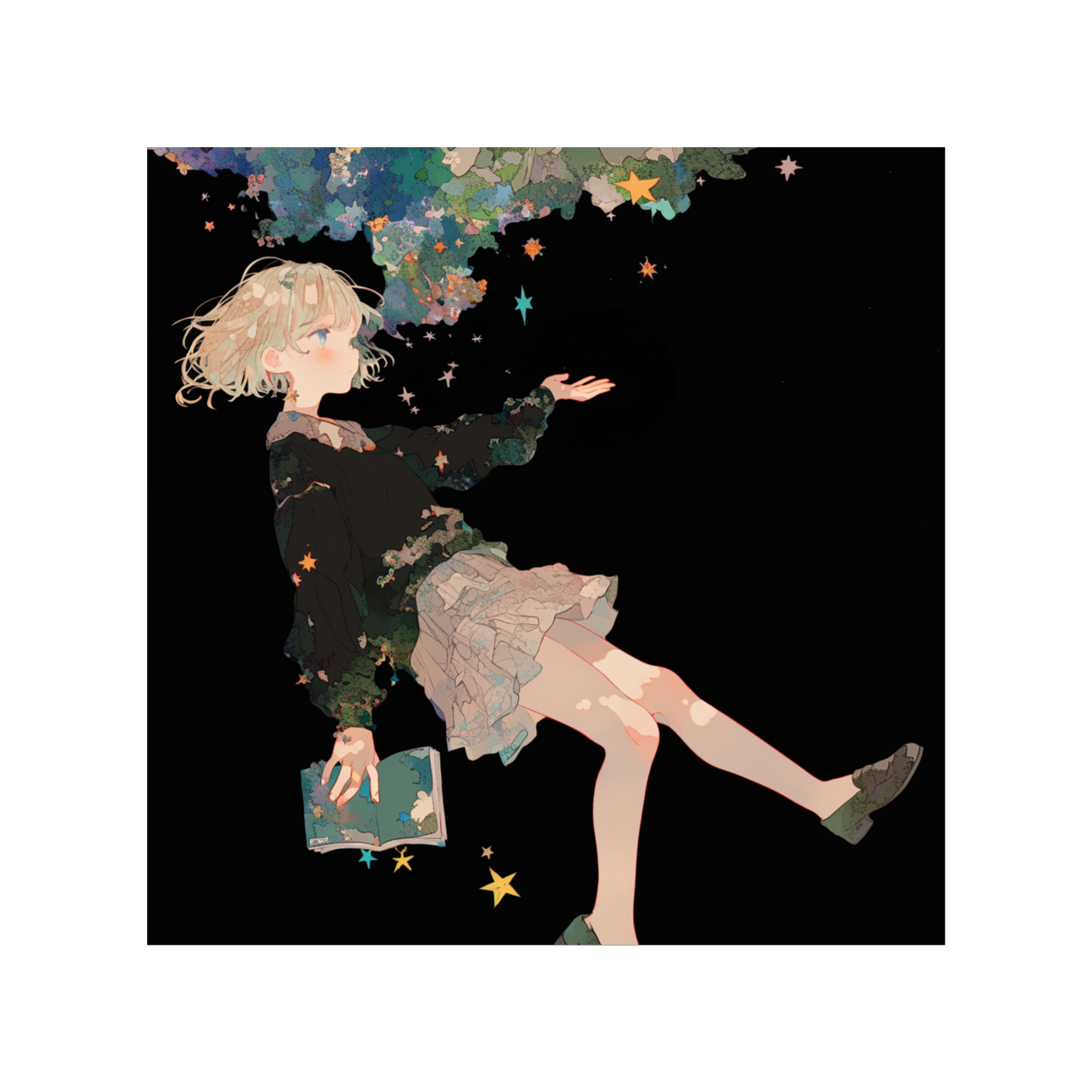 J-POP/rock song with a hopeful, dreamy, and liberating vibe, Use 3 electric guitars (one for clean arpeggios, one for distorted riffs, one for harmonies), electric bass, and dynamic drums, The tempo is 120-130 BPM, The song should evoke a starry night and a rainbow of colors, with a structure of intro, verse, pre-chorus, chorus, bridge, and outro, Emphasize the lyrics' themes of individuality and freedom, with a bright, emotional tone, Make the chorus uplifting and powerful, with layered guitars and dynamic drums to reflect the imagery of '88 constellations shining in rainbow colors