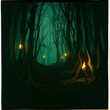 Characteristics: Intense string ostinatos (violins, violas), pounding tribal percussion, atmospheric forest sound effects, Verses emphasize tension with rapid arpeggios and staccato strings, building layers of orchestration, Choruses burst with sweeping orchestral brass, dramatic choir stabs, and driving drums, Echoes of folk horror through woodwind flurries and uncanny harmonics, Bridge features both instrumental break and spoken/whispered vocals for added suspense, ‑Pop ballad instrumentation Traditional rock band setup Synth-heavy EDM production Major key uplifting harmonies Auto-tuned vocals