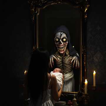 Lullaby transitioning to dark ambient horror, Gentle, melodic vocals at first, becoming distorted and unsettling, Sparse instrumentation, then building to dissonant, chaotic soundscape