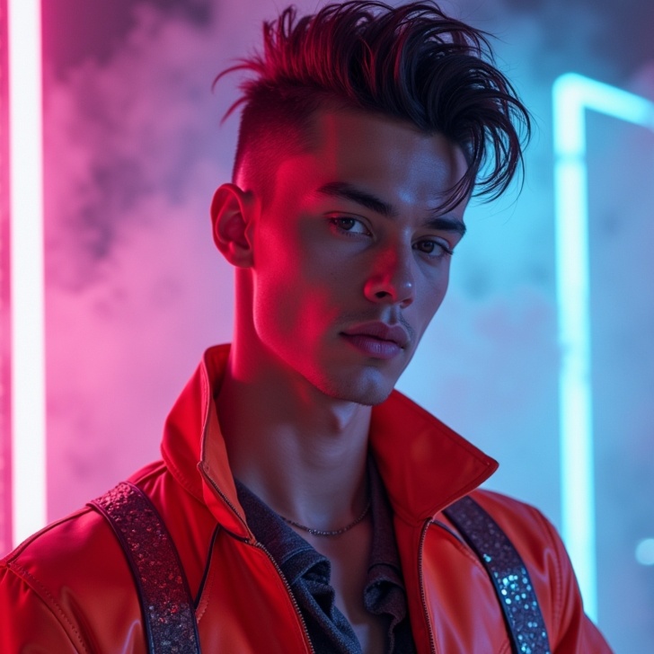 Mid-80s Italo-disco; Minimoog strong synths, electronic rhythm with clear beat; Roland TR-808 drum machine, 120 BPM; male melodic vocals, make the vocals louder and more prominent