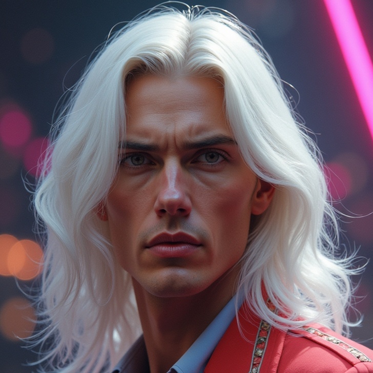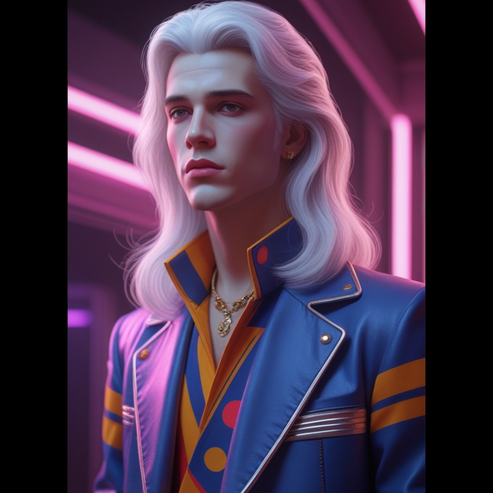 Electronic, Space Disco, 110 BPM, D minor, analog synths, arpeggiators, cosmic effects, male vocalist